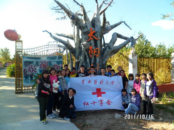 此外,学校红十字会作为师生志愿服务的重要平台,将人道为本,博爱为怀,奉献为荣作为行动指南,将志愿服务常态化作为志愿者工作要求。志愿者们坚持前往附属北京佑安医院爱心家园看望艾滋病患者,在青年中率先垂范,消除歧视;坚持深入社区进行志愿服务,为老年人测量血压,向社区居民宣传疾病预防、健康保健知识;坚持义务服务流动献血车,向路人宣传献血常识,为献血志愿者提供相关服务;坚持向太阳村献爱心、送温暖,组织捐衣捐物、与残障儿童共度周末。志愿者们将志愿精神、红十字精神与岐黄济世、大医精诚等医学美德完美融合,自觉践行“敬畏生命,珍重健康”;医学终极价值观。
